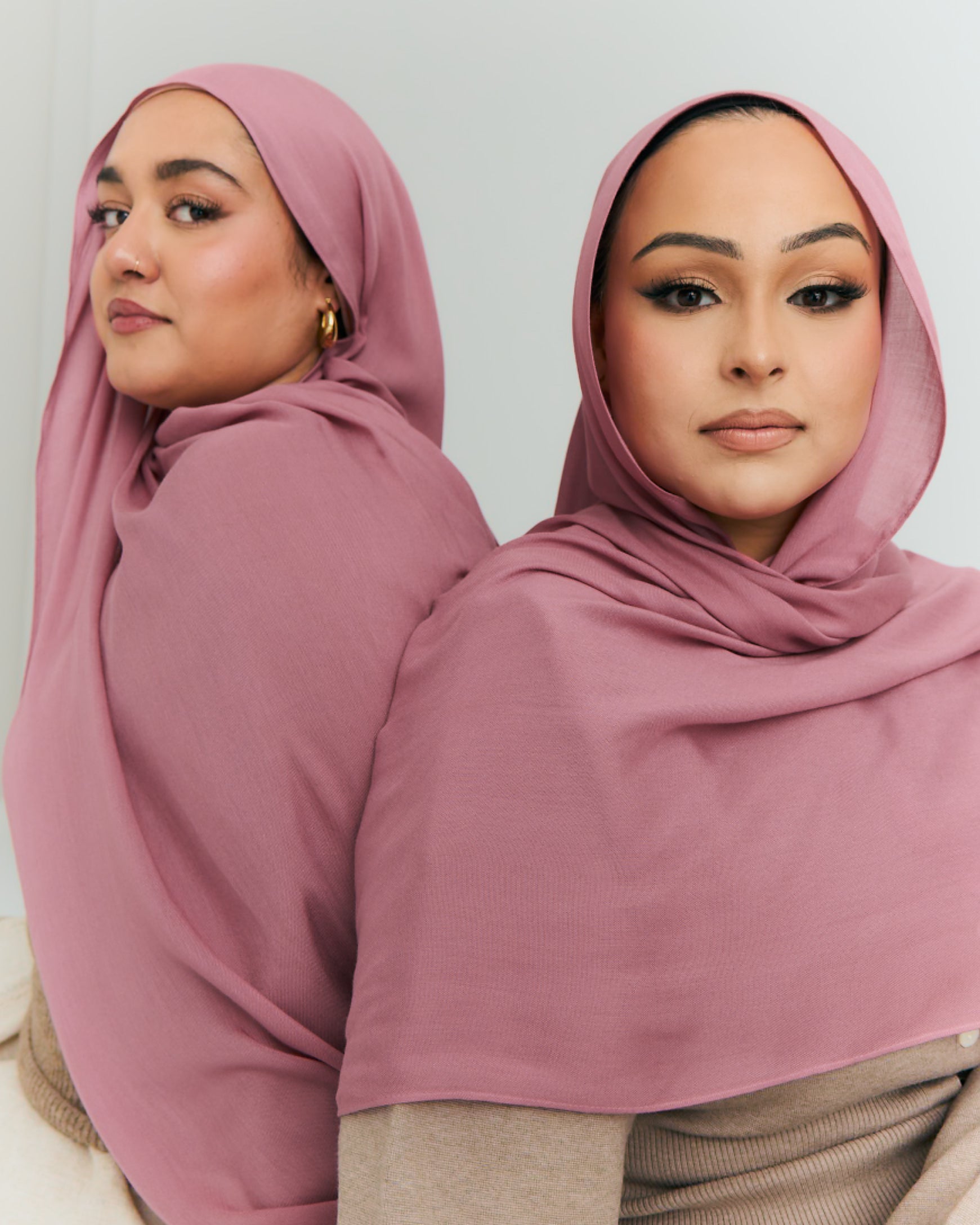 This muted rose modal hijab has cozy brown and mauve undertones, inspired by the comfort of Afghan sheer chai. Warm, familiar, and softly sweet. Part of the Qahwah Cafe series. It’s buttery soft, drapes beautifully, and lays perfectly on your head. Made from Anar’s Butter Modal fabric.